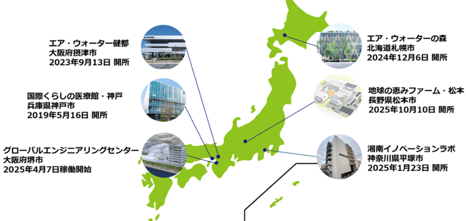 エア・ウォーターグループは「地球の恵みを、社会の望みに。」をパーパスに掲げ、産業ガス、エネルギー、医療、農業・食品、海水といった多様な事業領域で培った技術等を活用し、社会課題の解決と新規事業創出による事業成長に取り組む。