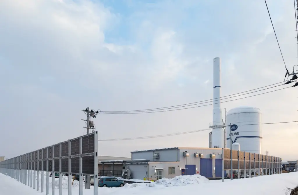 エア・ウォーターグループは、カーボンニュートラルの実現に向け、自社の温室効果ガス(GHG)排出量を減らす「責務」と、製品・事業を通じた社会のGHG排出削減への「貢献」の両面から取り組みを推進しており、その一環として、2026年度までに太陽光発電の導入設備容量10MWを目指す。豪雪地帯を含む全国14カ所への垂直ソーラー発電システム設置により、発電容量は1.3MW、CO2排出削減量は年間約590tを見込む。これによって2025年度の太陽光発電容量は合計6MWになる予定。