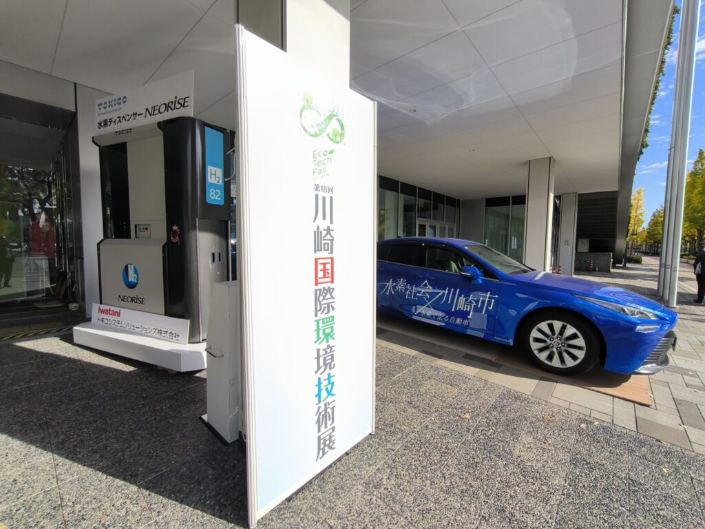 トキコシステムソリューションズは2025年11月12・13日の二日間、神奈川県川崎市の「カルッツかわさき」で開催された「第18回川崎国際環境技術展」へ出展し、国内の商用水素ステーションで燃料電池自動車(FCV)や燃料電池バス(FCバス)に水素を充填するダブルノズルミドルフロー対応水素ディスペンサー「NEORISE(ネオライズ)」の実機を展示した。充填ノズルを2本装備しており、2台のFCVへ同時に充填が可能なほか、ノズル2本を同時に使用した大容量の水素タンクへの高速充填にも対応する。