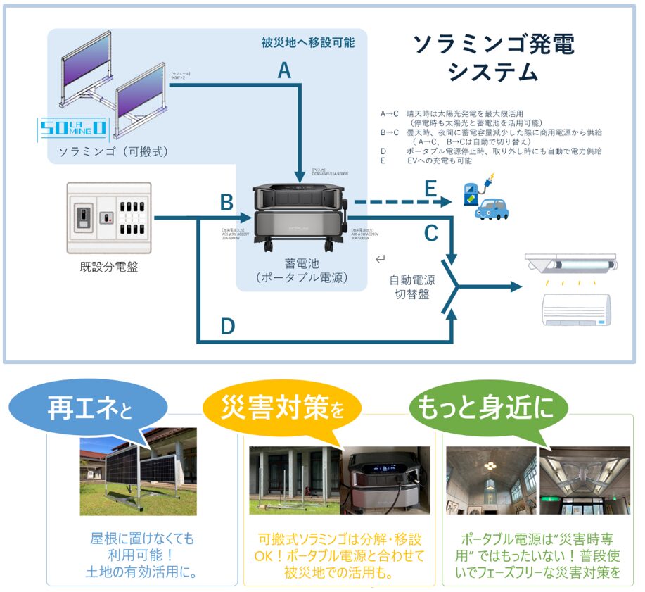 山陰酸素工業(本社:鳥取県米子市、並河 元 代表取締役社長)と安来市は、安来市伯太中央交流センター(わかさ会館)で、垂直型太陽光発電ソラミンゴとポータブル電源を組み合わせた発電システムの実証を開始した。土地を有効に活用できるソラミンゴを可搬式とすることで、平常時は再生可能エネルギーを最大限に活用しながら、災害時には、蓄電池(ポータブル電源)とセットで被災地に移設が可能とした。平常時にも役立つフェーズフリー(「Phase Free」:日常時と災害時を分けずに、普段から使っているモノやサービスをそのまま災害時にも活用できるようにする考え方)なシステムとして、地域の防災力向上と持続可能な社会の実現に貢献する。
