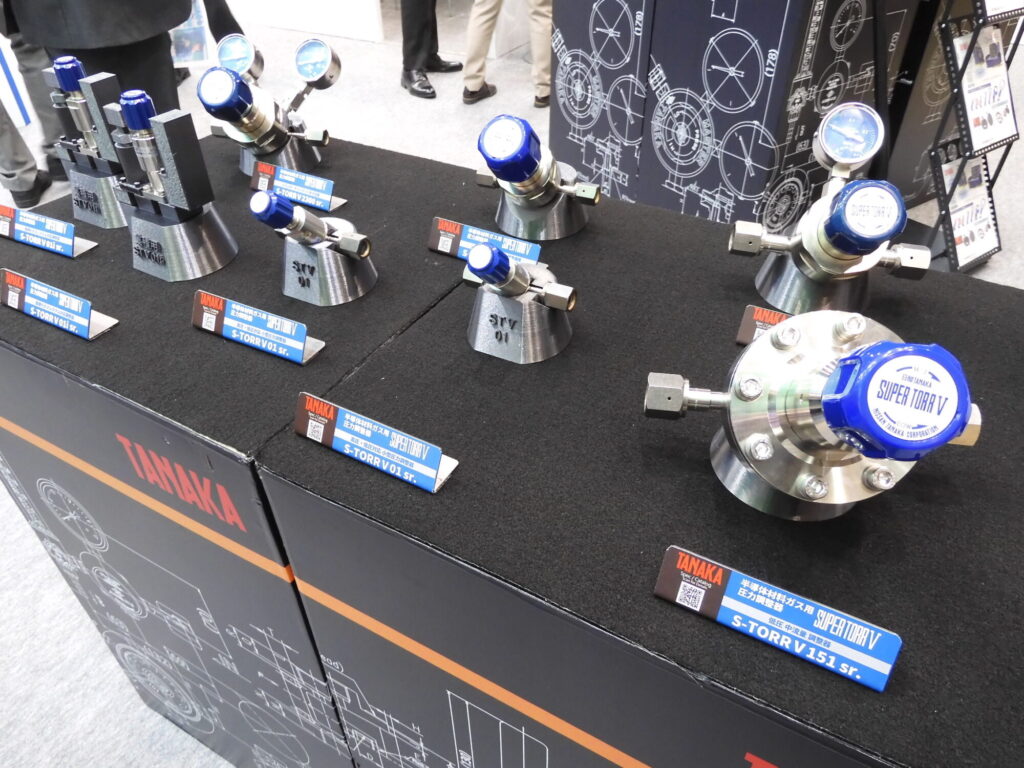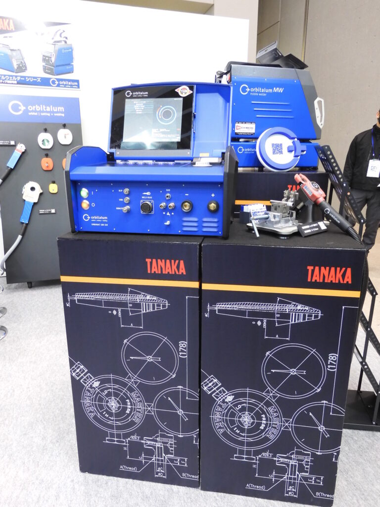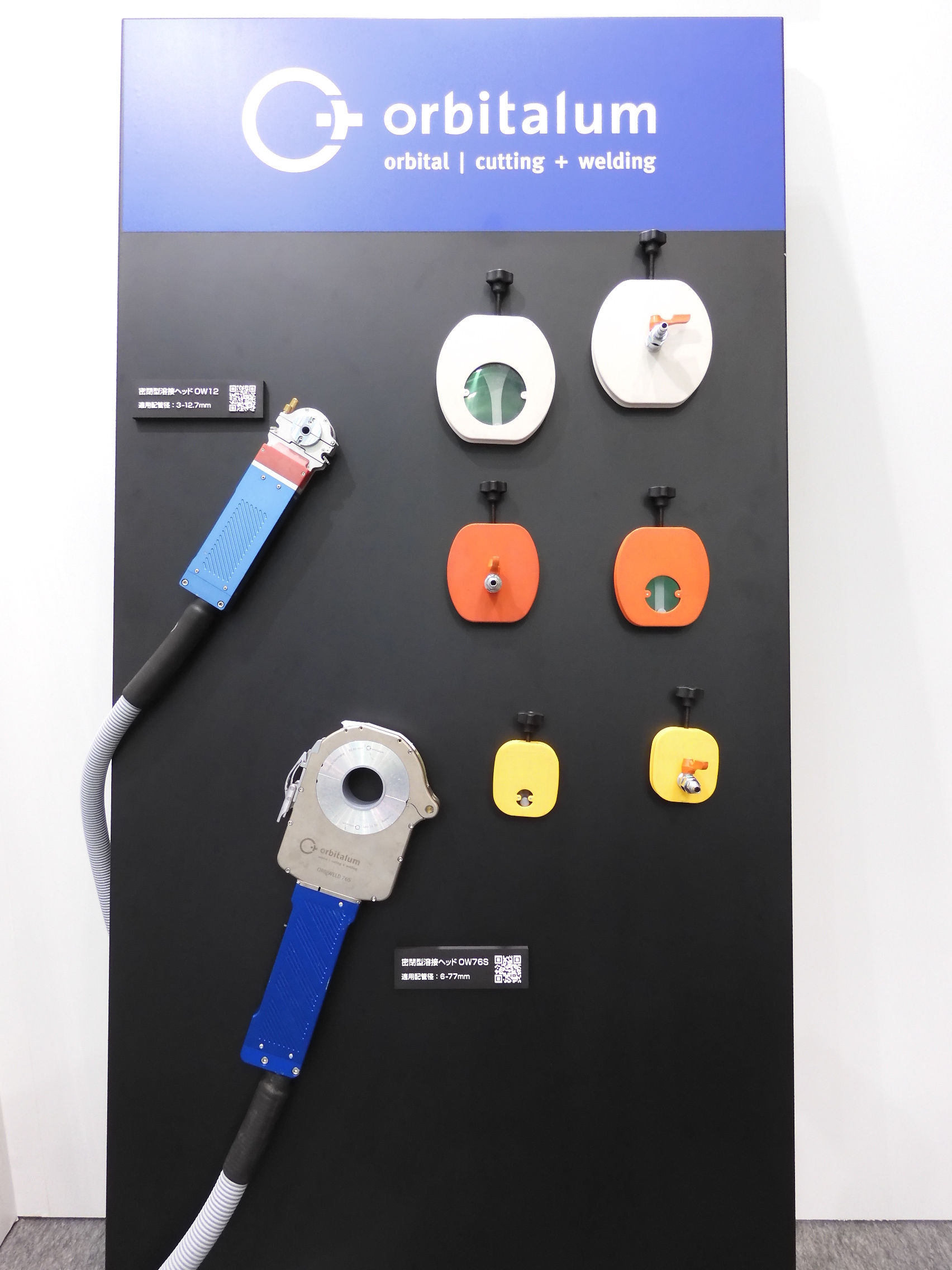 日酸TANAKAは、ドイツ・オービタルム社製配管TIG自動溶接機2機種と半導体用圧力調整器TORRシリーズを展示。オービタルム社の溶接電源として、現場作業持込に最適な「モバイルウェルダー シリーズ」と工場内プレファブ溶接に最適な「オービマット 180SW」、溶接ヘッドの「オービウェルドシリーズ」適用配管サイズ φ3.0㎜ ~φ38.1㎜ までの4機種をラインアップした。また、3Dプリンタで製造した配管溶接用のバックシールド治具「PPAP」も各種サイズを展示。