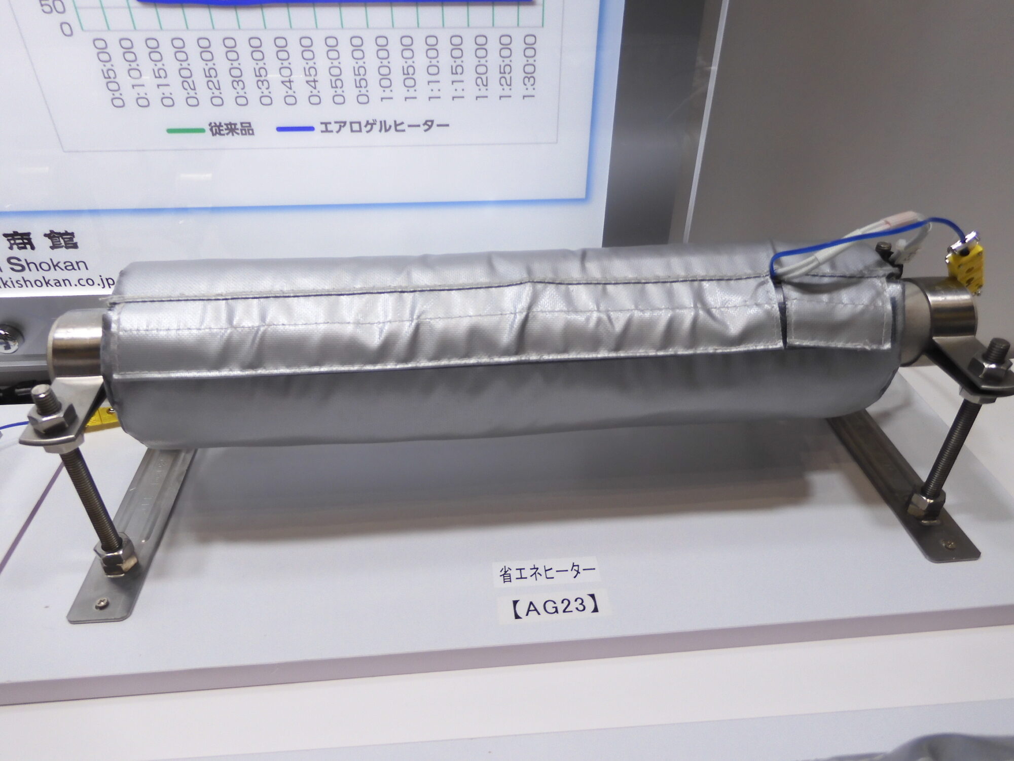 今年からSEMICON出展を再開した鈴木商館は、自社製品のクライオポンプ用ヘリウムコンプレッサユニットの新製品「SSCS-3700」の実機を展示した。また、供給系配管のコンタミ削減、排気系配管の生成物除去の提案や、従来品に比べ最大約50%の省エネとなる配管のジャケットヒーターも出展。エネルギー使用量の増大と電力コスト上昇が課題となっている半導体製造工場に対してソリューション提案を行った。