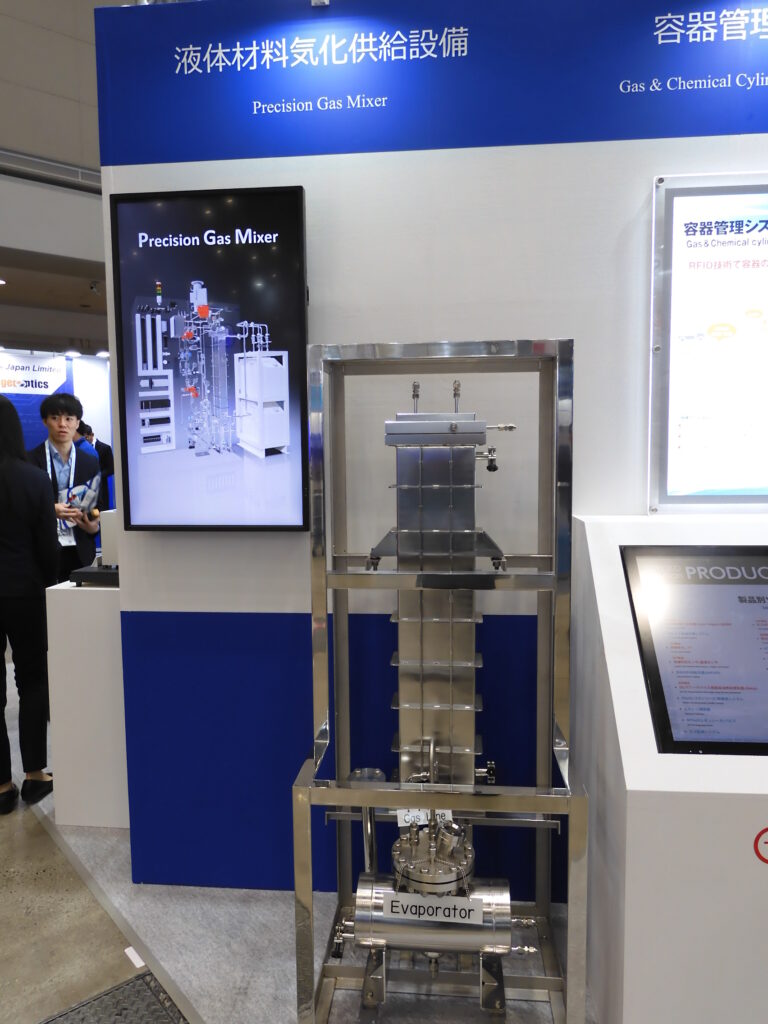 東横化学は「トータル・ガス・ケミカル・マネジメント」のサービスとソリューションを提案。自社開発製品のSiCパワーデバイス用 超高温熱処理装置「Ailesicシリーズ」や高感度質量分析装置「ASTON Impact」、液体材料気化供給設備「Precision Gas Mixer」のほか、取扱製品としてAPTech社製プロセスガス用圧力調整器・バルブ、ヘリウム・水素ガス回収装置などを紹介した。