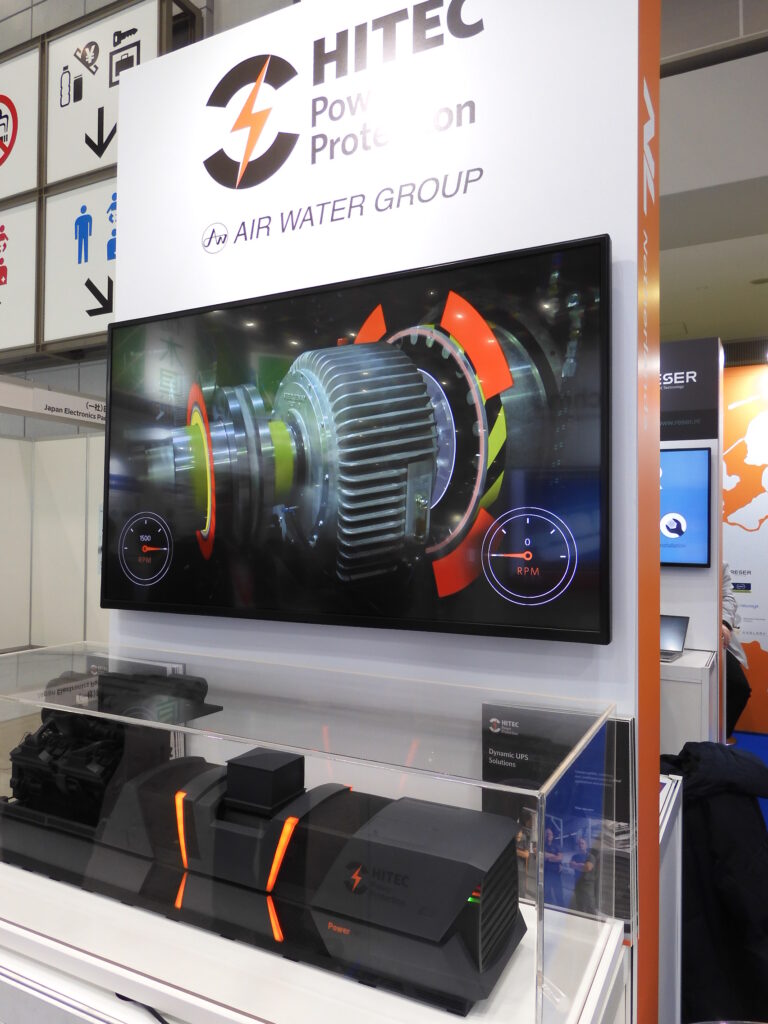 半導体製造装置のASMLやフィリップスで知られるオランダのパビリオンには、エア・ウォーターグループでディーゼル発電型無停電電源装置(UPS)の設計・開発などを行うHitec Power Protection社が出展、ディーゼルエンジンと発電機、運動エネルギーモジュール(フライホイール)を一体化したダイナミック無停電電源装置(DRUPS)のプロモーションを行った。