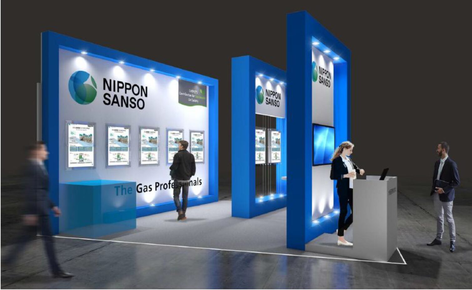 主な展示内容は、アンモニアを分解し発生させた水素をFCEV グレード(ISO Grade D)まで精製できるアンモニア分解水素精製装置や、FC 化した港湾の荷役機械等へ、移動しながら高圧水素を供給する移動式水素ステーション(Hydro Shuttle)、工場から排出される排ガスに含まれるCO2 を98%まで濃縮するCO2回収装置、少ないフットプリントと現地工期の短縮を実現したCCS 用の縦型LCO2貯槽及び出荷設備で構成されるCO2出荷ターミナルなど。