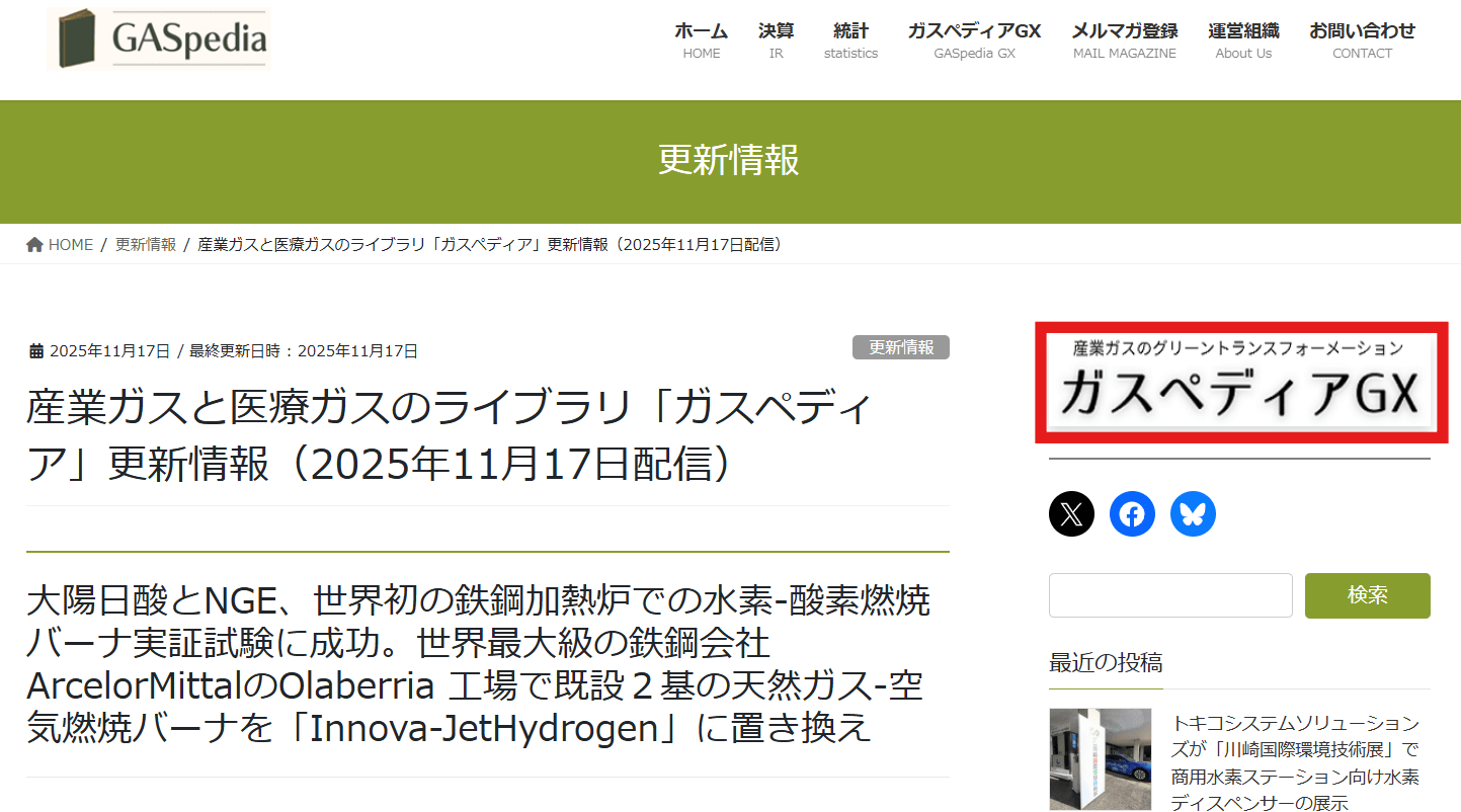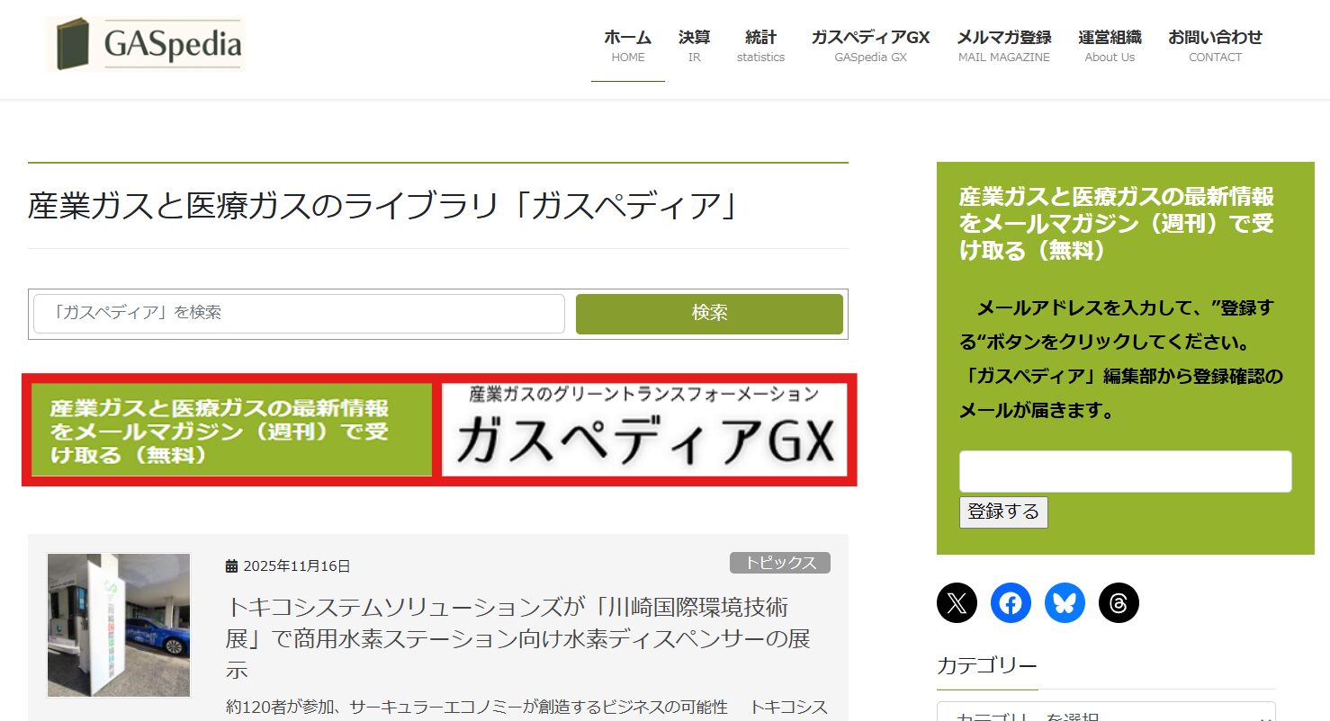 空気から製造されるセパレートガス(酸素、窒素、アルゴン)や、水素・一酸化炭素・合成ガス・ヘリウム・炭酸ガス・アセチレン・レアガス(ネオン、キセノン、クリプトン)・半導体向け特殊ガス・標準ガス・笑気ガス(亜酸化窒素)など、工業用・医療用に利用される気体や液体の業界情報を発信。